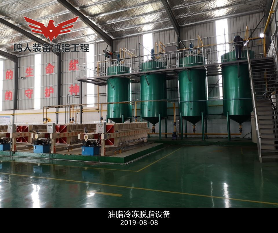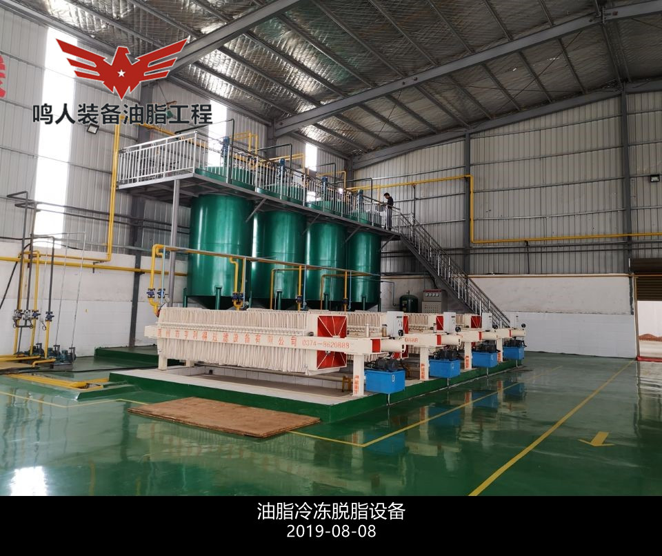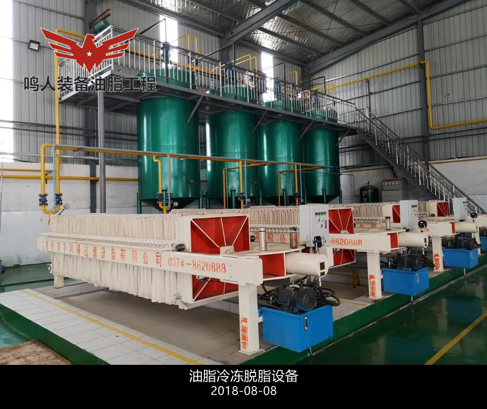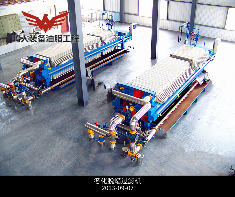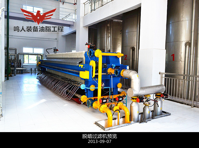 低溫脫蠟即單靠冷凍結(jié)晶,然后用機(jī)械方法分離油、蠟而不加任何輔助劑和輔助手段的脫蠟方法。分離時(shí)采用加壓過(guò)濾、真空過(guò)濾和離心分離等設(shè)備。此法**簡(jiǎn)單的是一次結(jié)晶、過(guò)濾法。將脫臭后的油脂(溫度在 50℃以上)移入有冷卻裝置的結(jié)晶養(yǎng)晶罐,慢速攪拌,在常壓下充分冷卻,整個(gè)冷卻結(jié)晶時(shí)間為48h,然后過(guò)濾分離油、蠟質(zhì)。過(guò)濾壓強(qiáng)維持在 0.3–0.35MPa,過(guò)濾后要及時(shí)用壓縮空氣吹出蠟中夾帶的油脂,濾出的油即為脫蠟成品油。