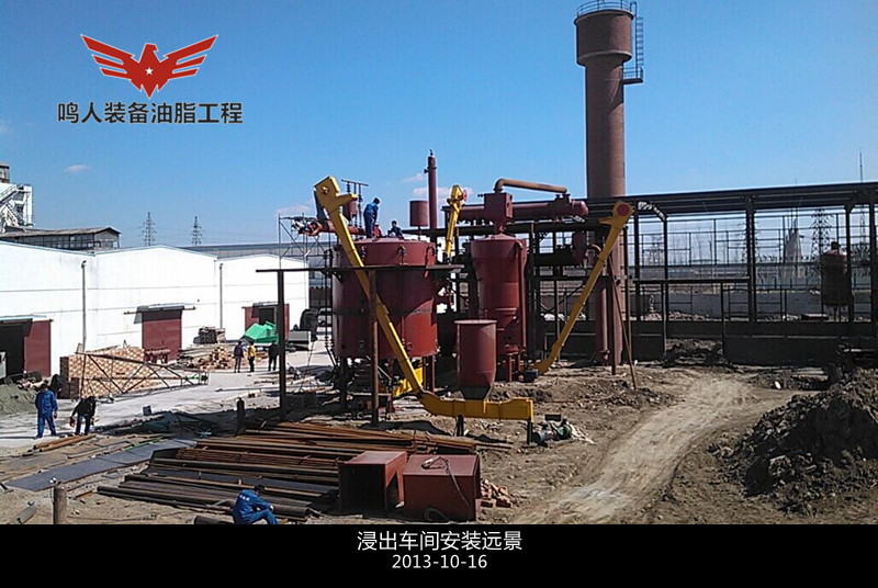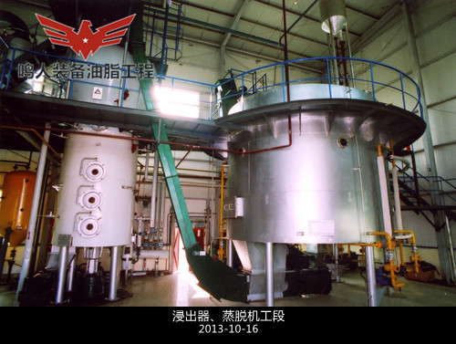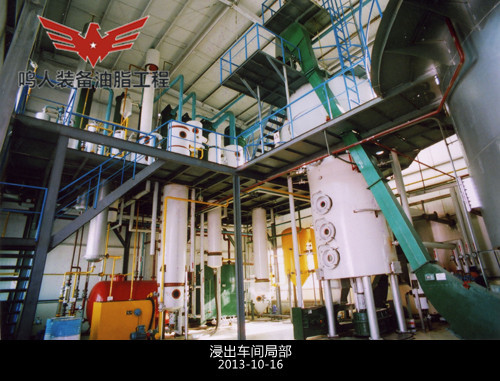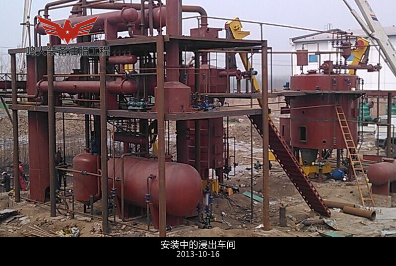 本車間包括:預處理餅的浸出、混合油的負壓蒸發(fā)、汽提、溶劑蒸汽冷凝、尾氣回收等工序。